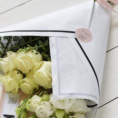 A relaxed collection of lush white flowers in a chic white gift wrap. Beautifully minimal, the lucky person receiving them has creative freedom to arrange them just how they like.