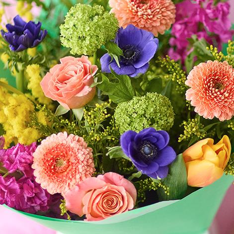 A gorgeous bouquet of vibrant fresh flowers, expertly arranged by a local florist.