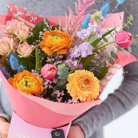 A lovely gift box of fresh flowers, chosen and arranged by the florist. This year our Mother’s Day designs are all about gorgeous pastels with pops of colour. Expect to see shades of baby pink, cream, and lemon with bursts of cerise and tangerine, and highlights of pale blue and lilac.