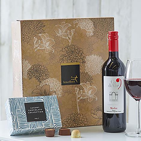 This lovely gift set combines a 75cl bottle of Red Wine and a box of yummy Luxury chocolates in a presentation box - to help them celebrate their special moment.